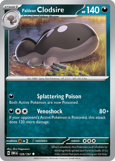 Paldean Clodsire (129/197) [Scarlet & Violet: Obsidian Flames]Set: Scarlet & Violet: Obsidian Flames Type: Darkness Rarity: Uncommon R...